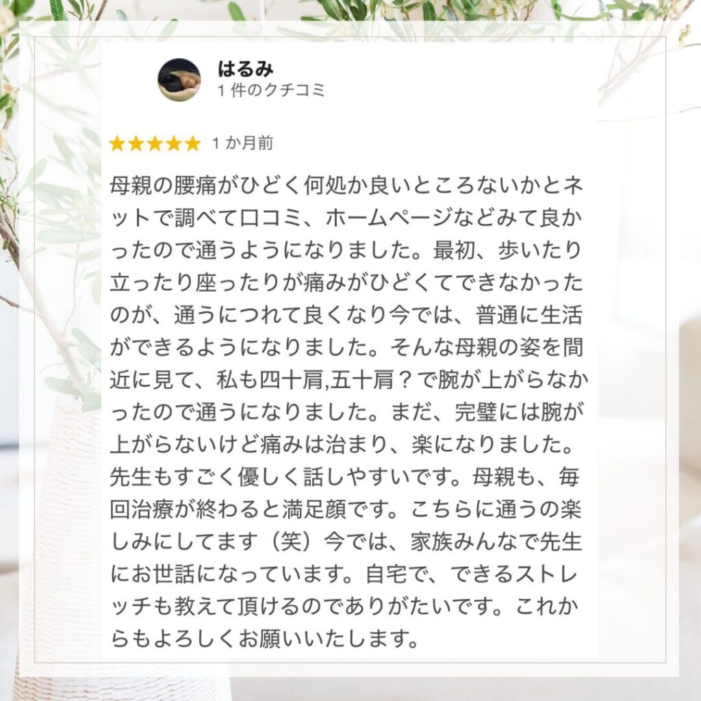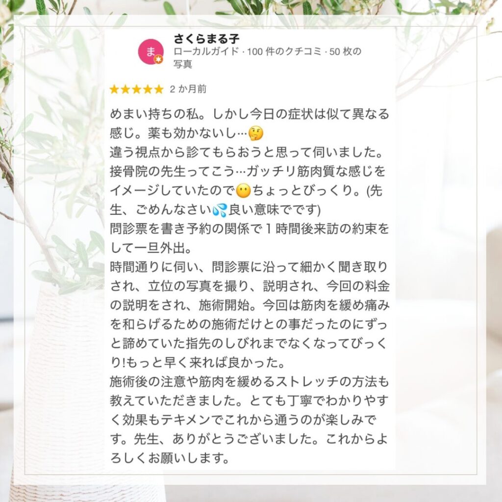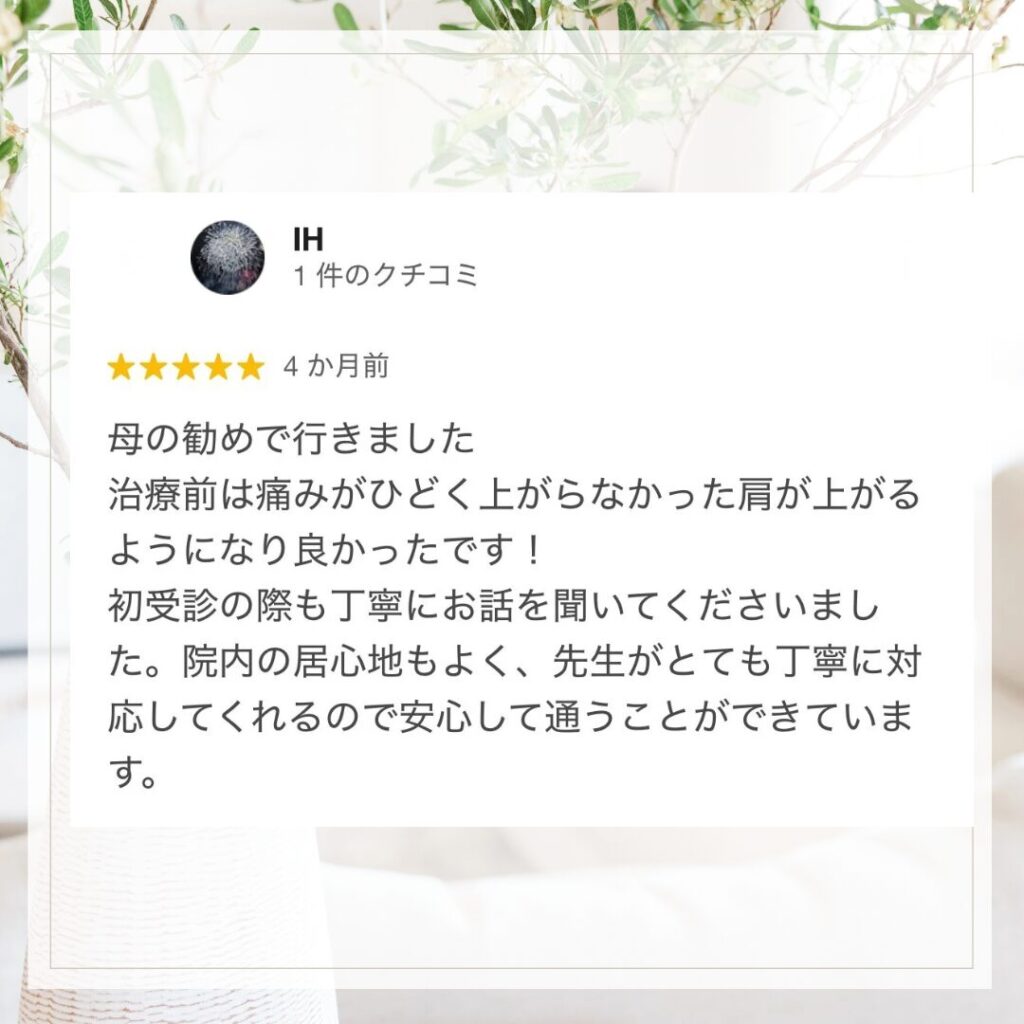 当院では施術前にしっかりと問診を行っております。痛みの症状をしっかりと把握しこれからどう施術していくのか分かり易くご説明いたします。ご不明な点がございましたら、遠慮なくお申し付けください。